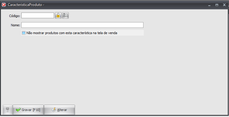 - Flag “Não mostrar produtos com esta característica na tela de venda”: Ao esta marcado produtos com esta característica não aparacerá na tela de venda.