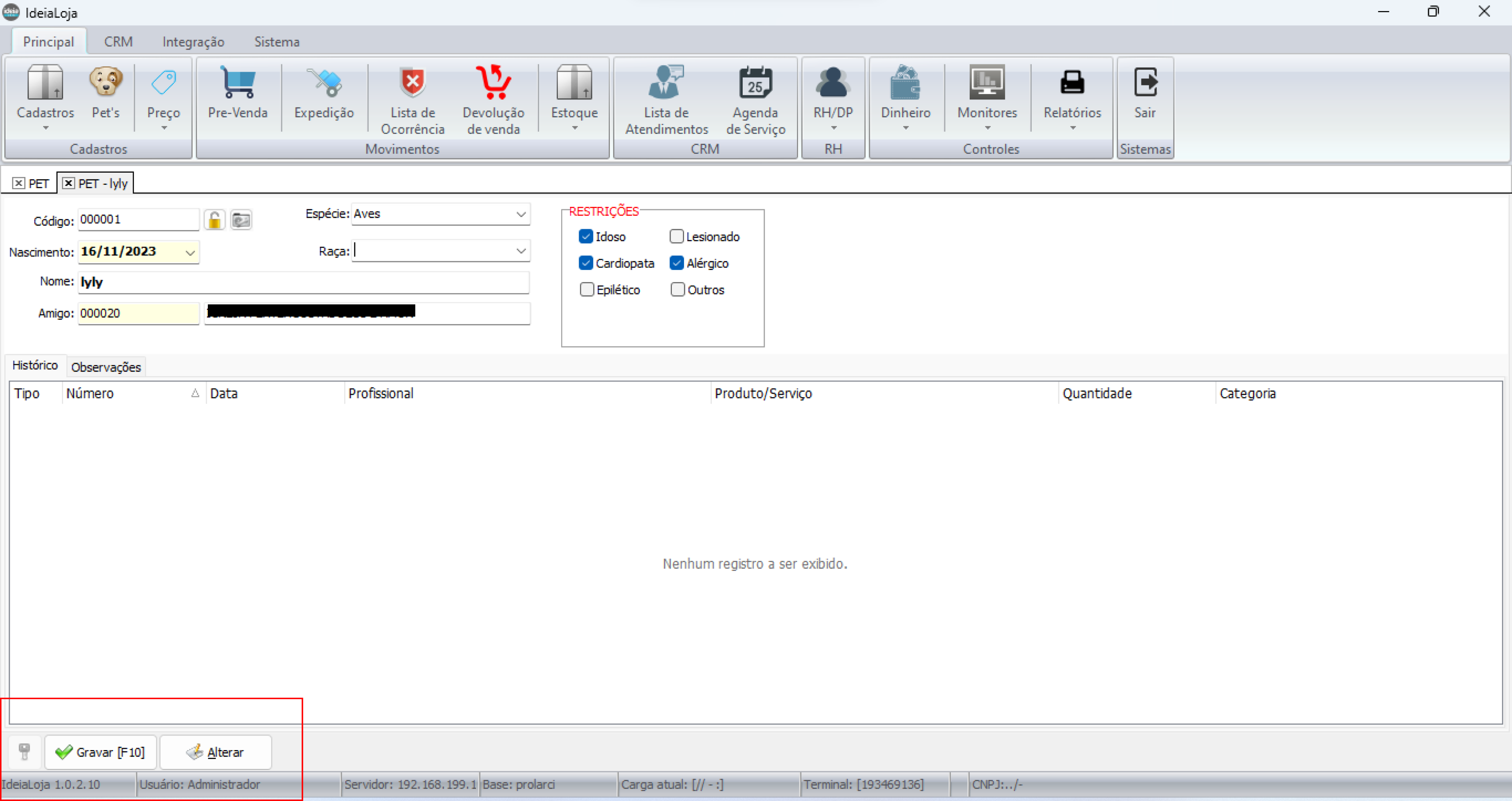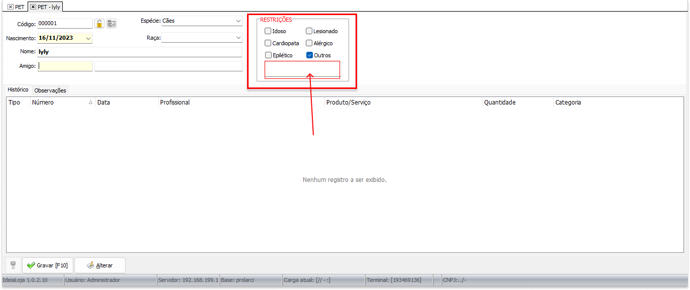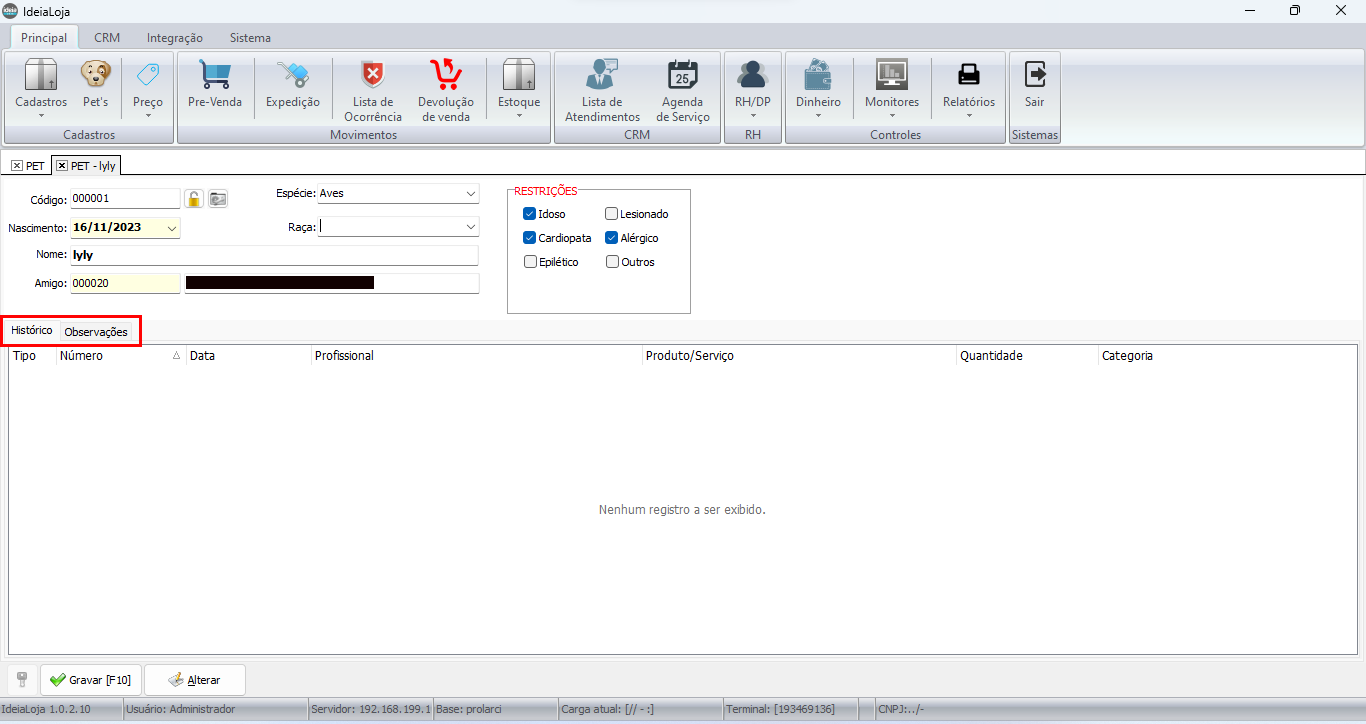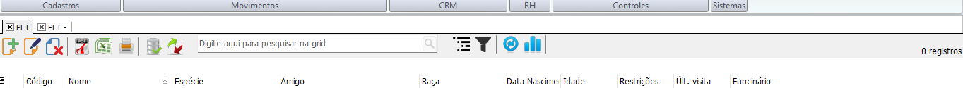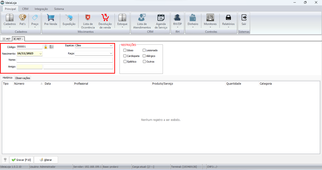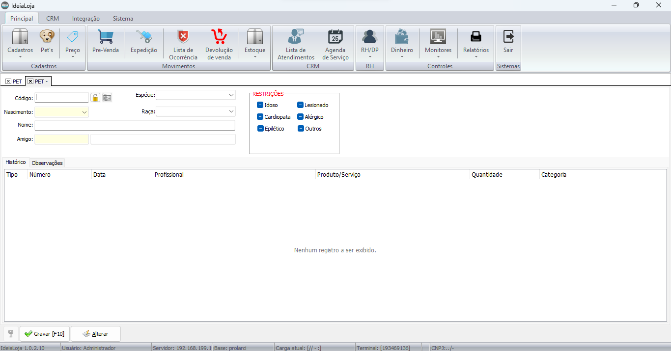 Observação: Esta tela surgirá em bancos de dados que sejam de clientes de pet shop.