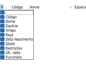 abrirá a tela abaixo, as que estiverem marcadas a coluna aparecerá na lista de registro.