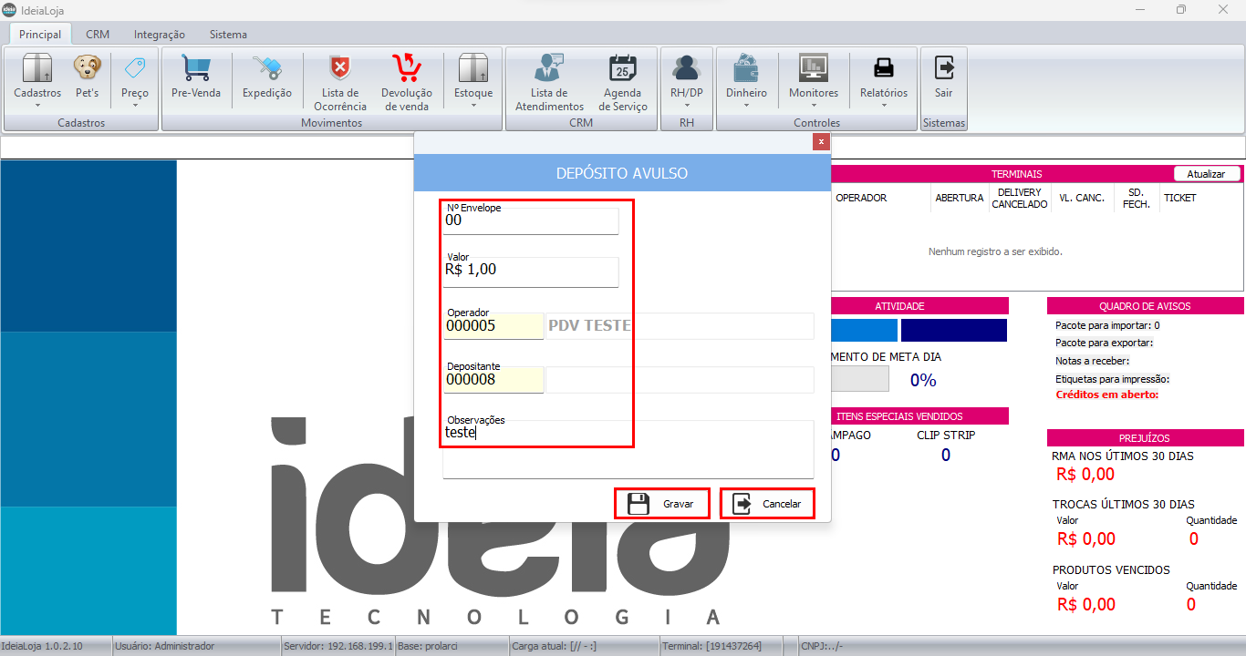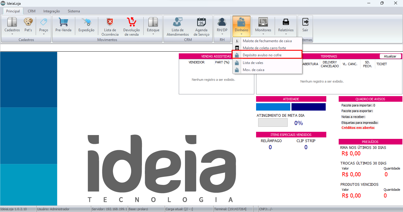 Como criar um depósito avulso no cofre através do Ideia Loja.