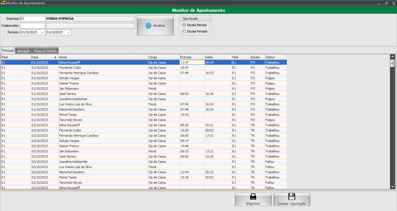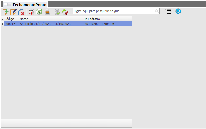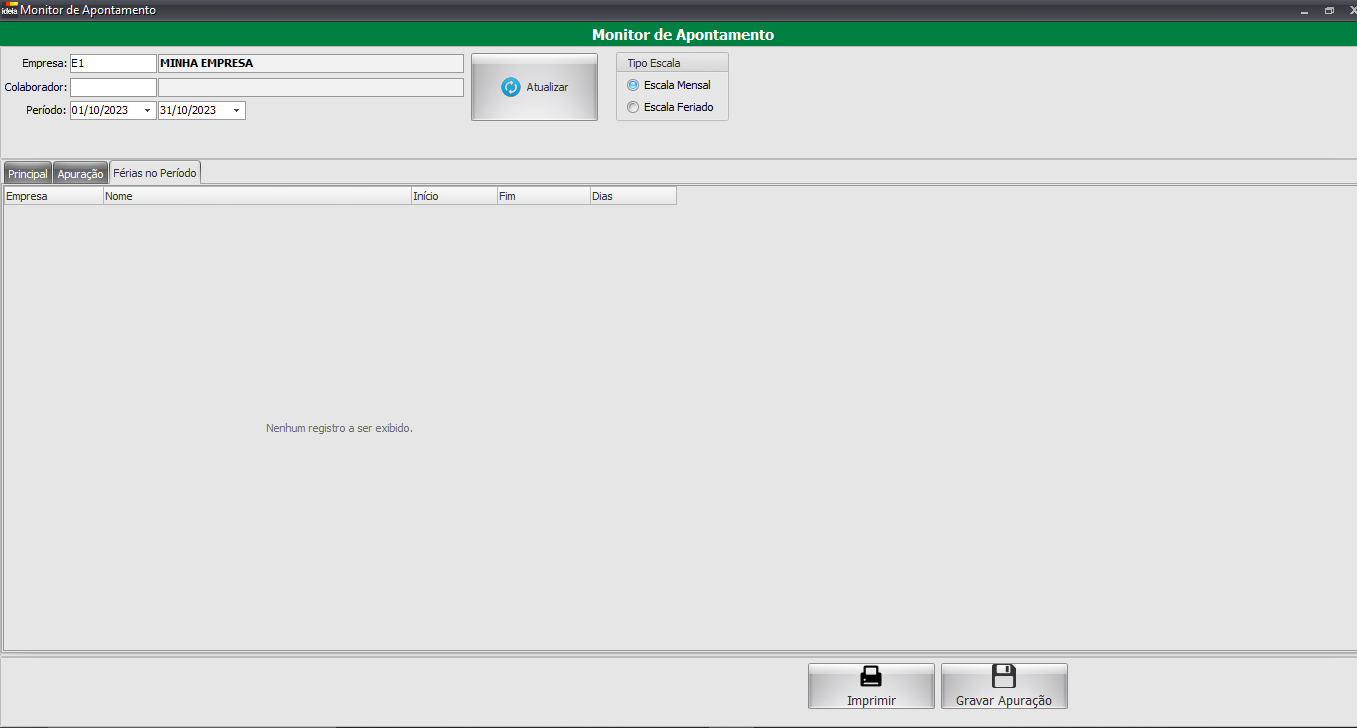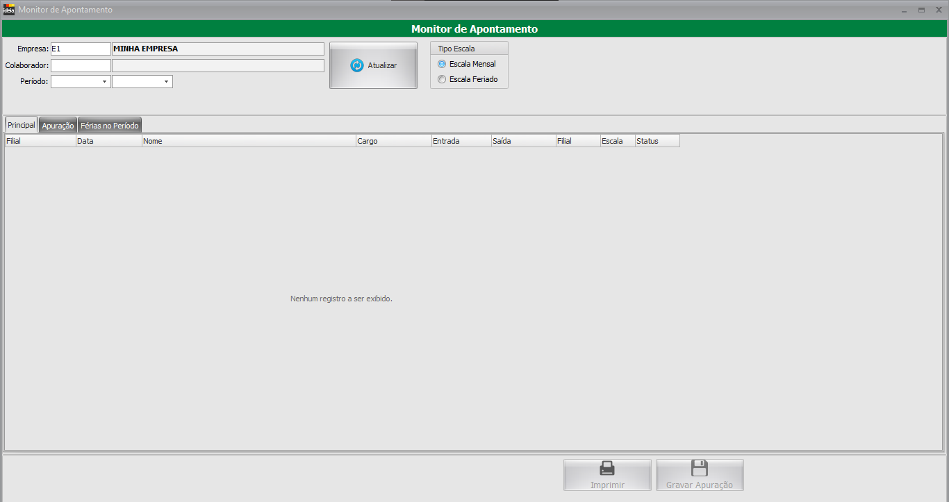 Nesta tela poderemos visualizar os registros de apurações realizados pelo Monitor de Apontamento.
