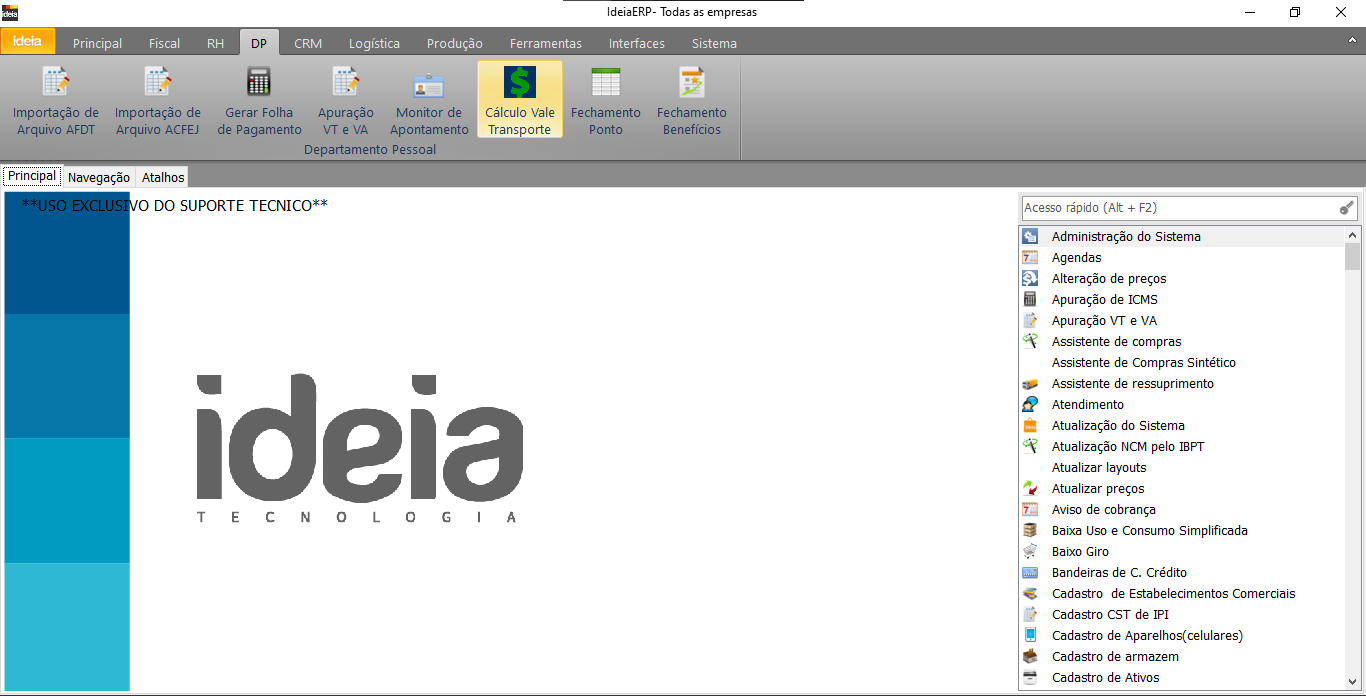 Caminho IdeiaERP: DP → Cálculo Vale Transporte