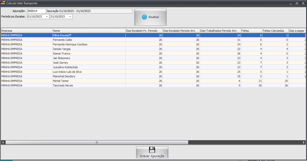 # Abrirá a seguinte tela: Onde temos listado os registros de apurações realizados.