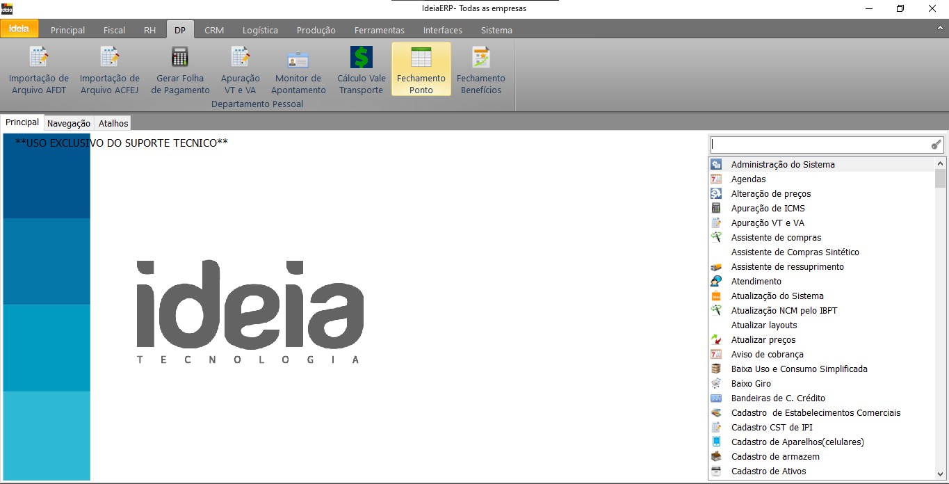Caminho IdeiaERP: DP → Fechamento de Ponto