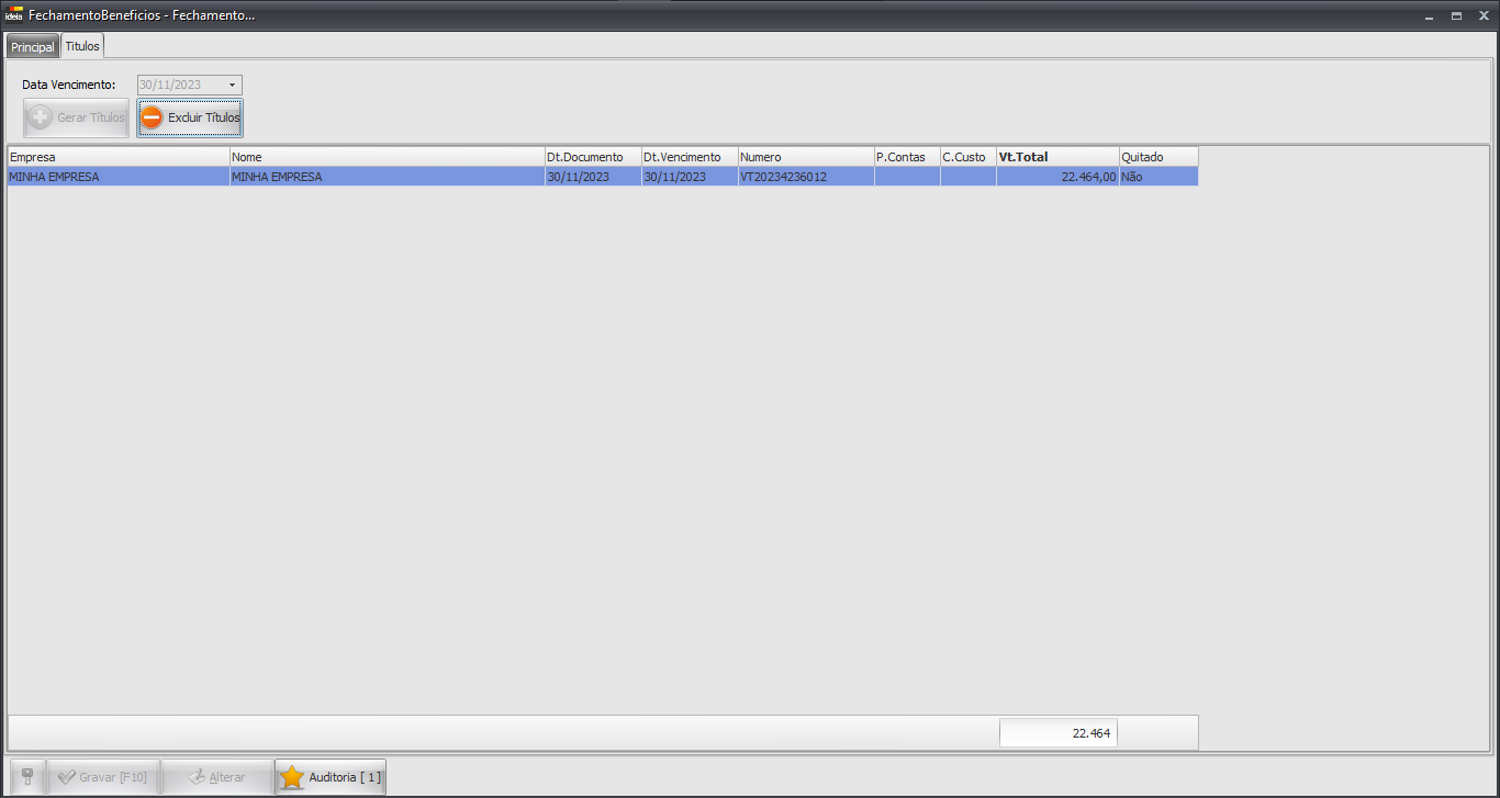 • Gerar Título: Cria o título com base no vencimento definido.