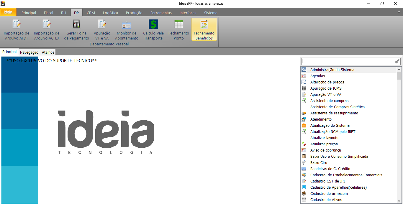Caminho IdeiaERP: DP → Fechamento de Benefícios