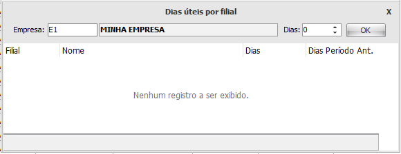 • Dias úteis por filial: Defina dias úteis para as empresas cadastradas.