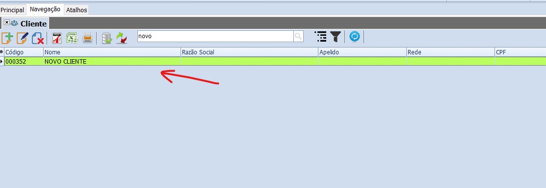 Em seguida, selecione o cliente que será atribuído o crédito.