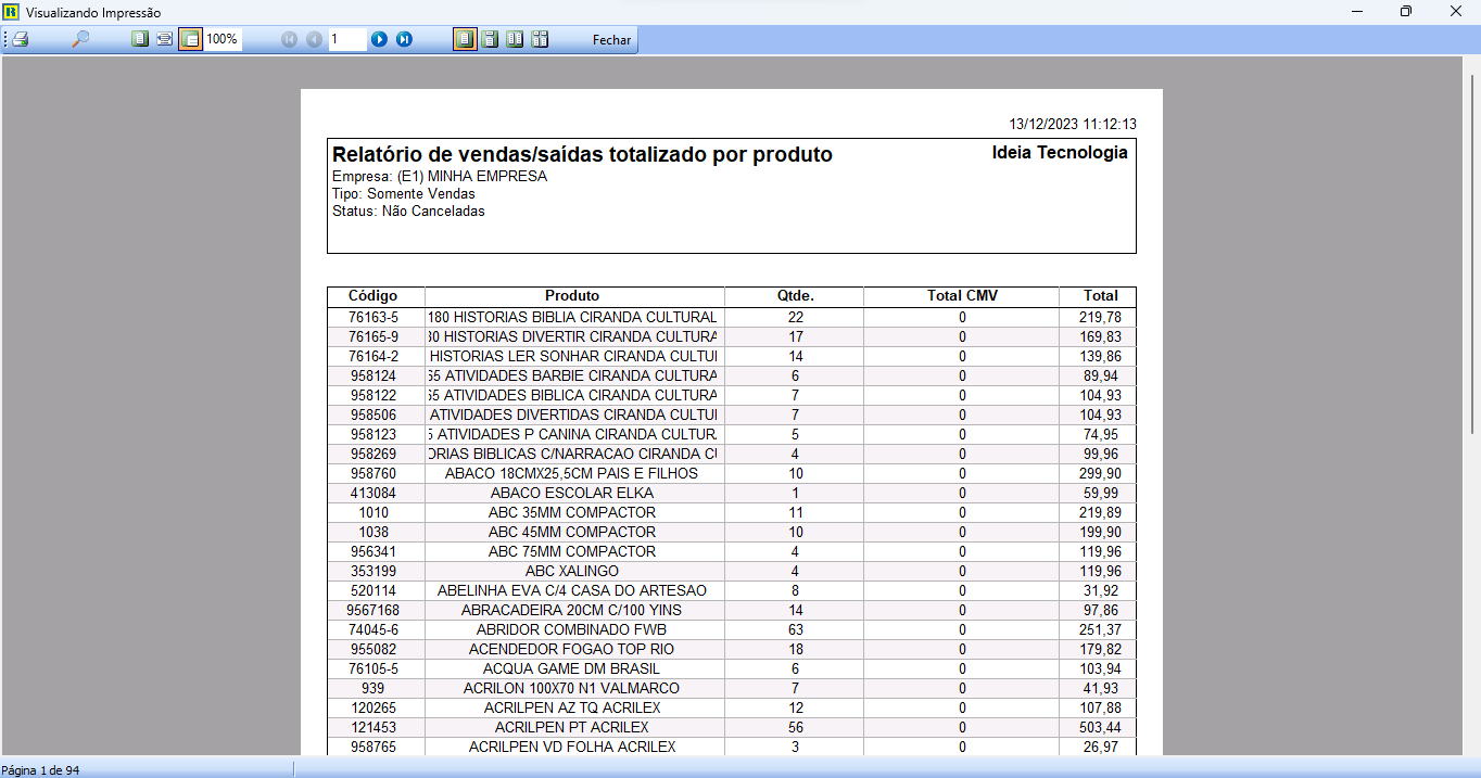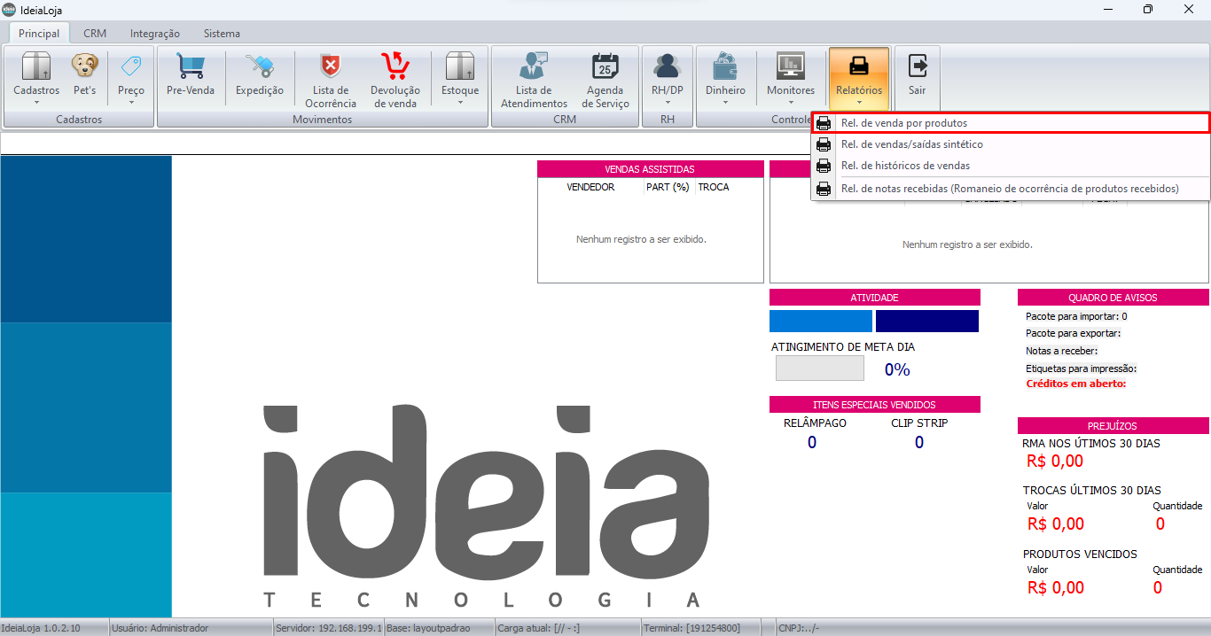 Para acessar o Relatório de venda por produtos vá em tela inicial → Relatórios → Rel.de venda por produtos.
