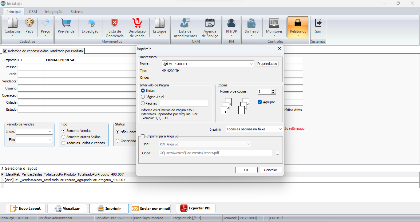 Clicando em imprimir será exibida a tela de configuração de impressão.