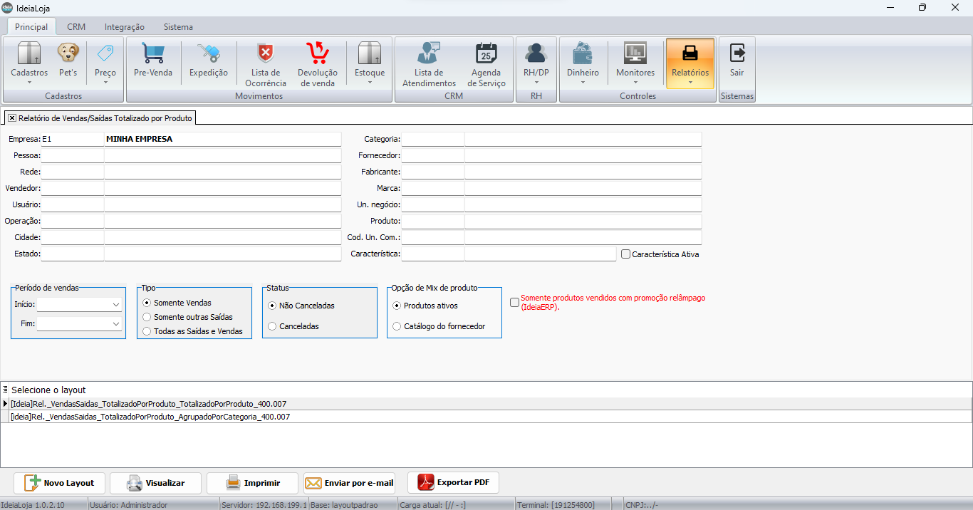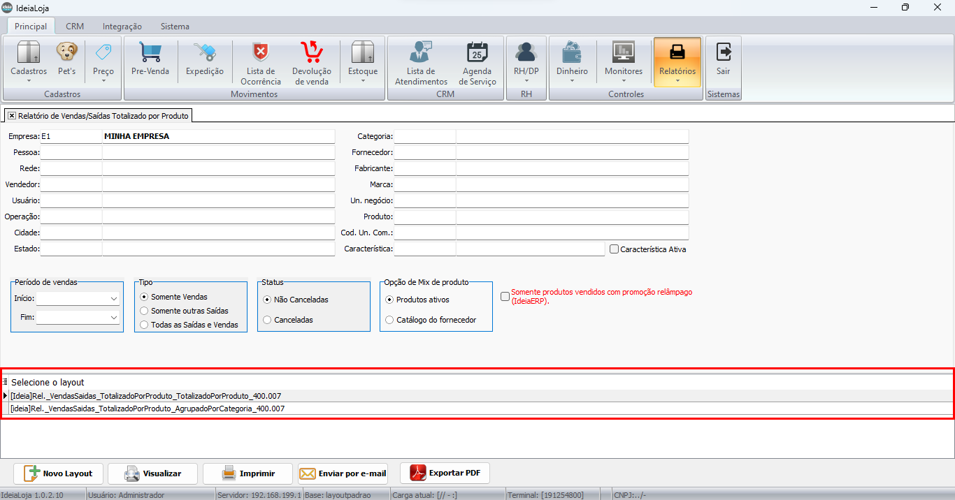 Ao clicar em visualizar será exibido os dados do layout que está selecionado.