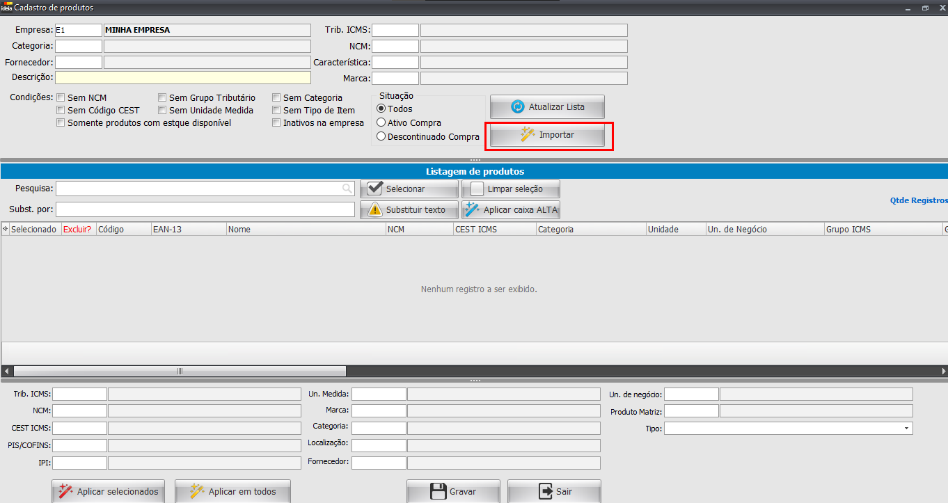 Manutenção de Cadastro de Produto Importação – IdeiaERP