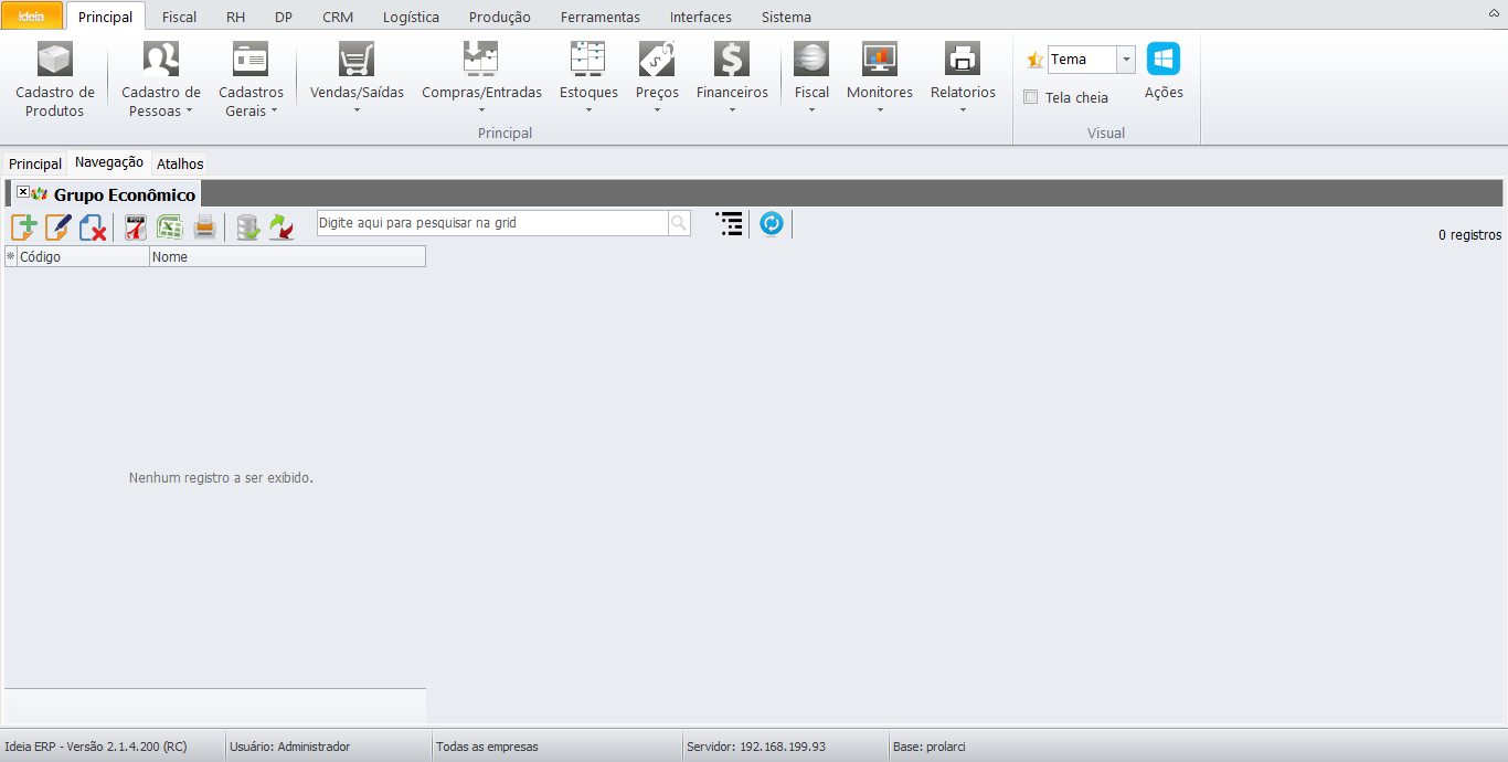 Cadastro de Pessoas > Cadastro de Grupo Econômico.