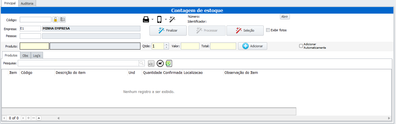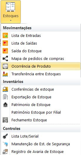 IdeiaERP → Estoques → Ocorrência de produto