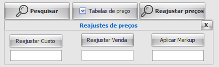• Reajustar Preços: Exibira uma opção de definir alteração baseada em porcentagem (%) sobre os preços;