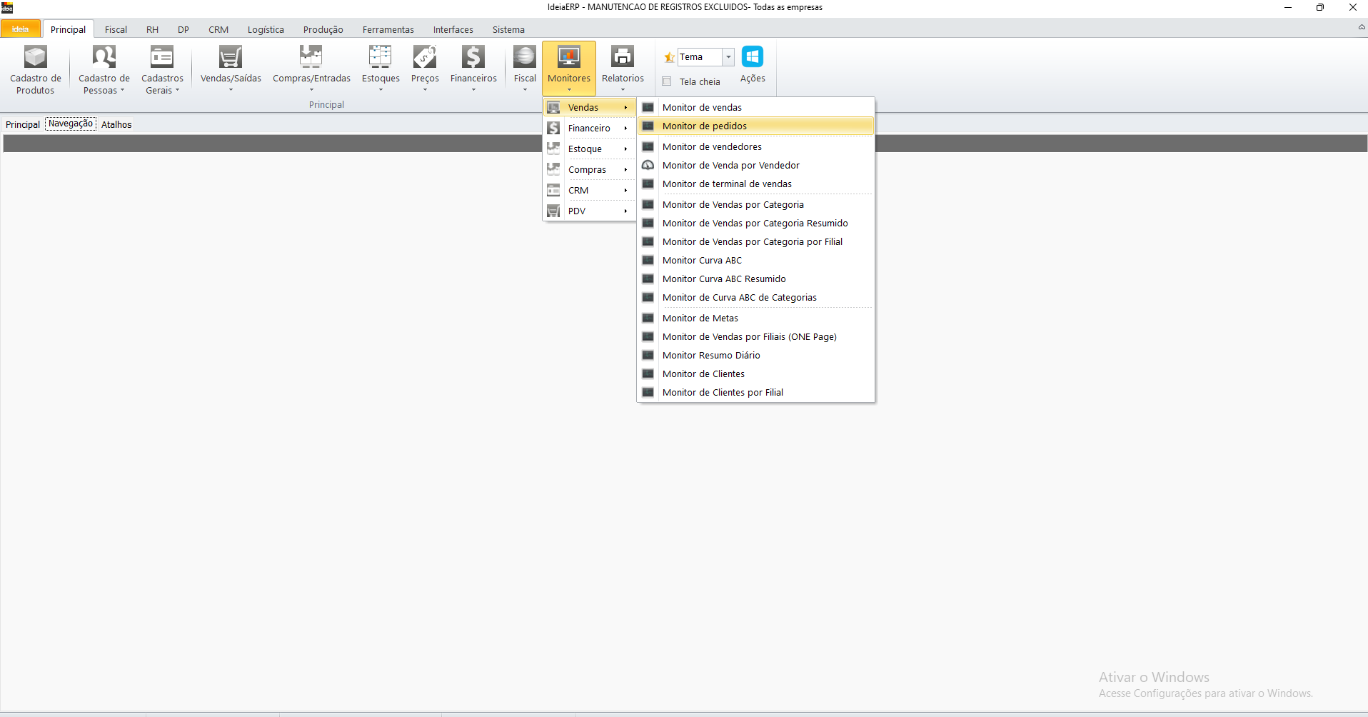 Caminho: IdeiaERP → Monitores → Vendas → Monitor de Pedido