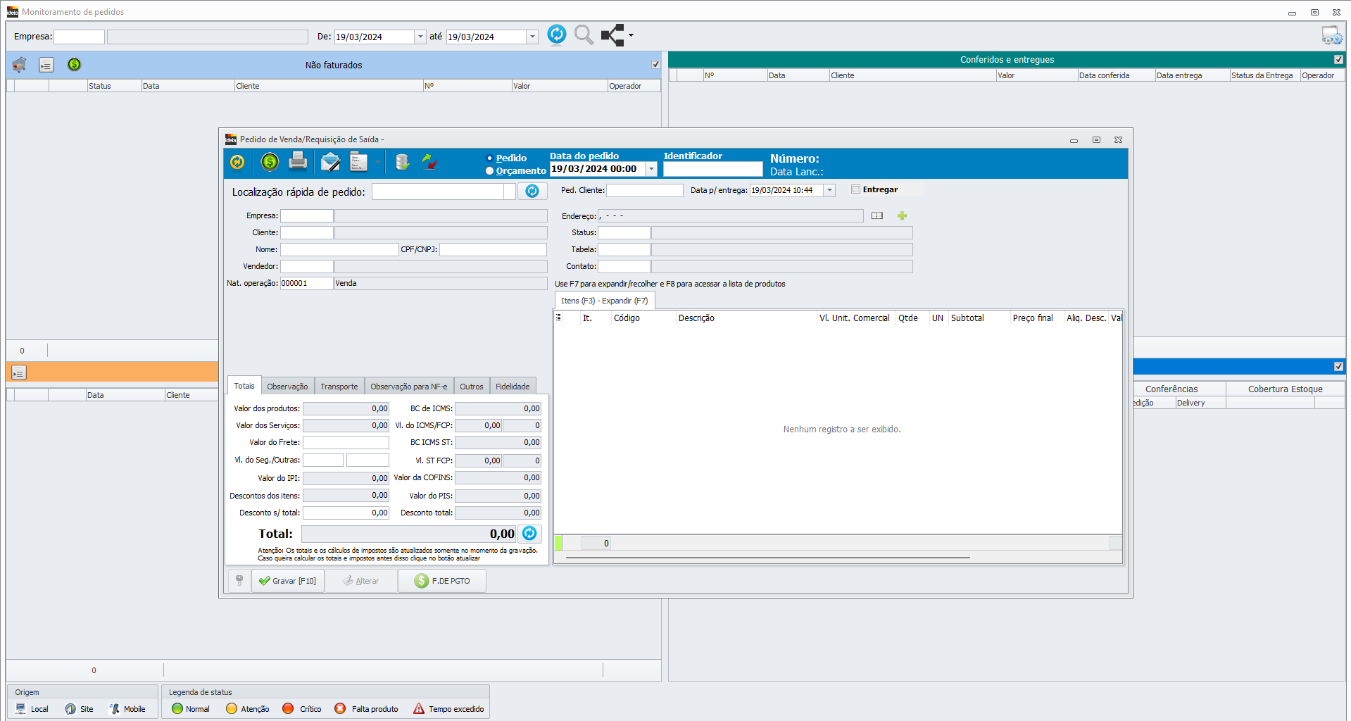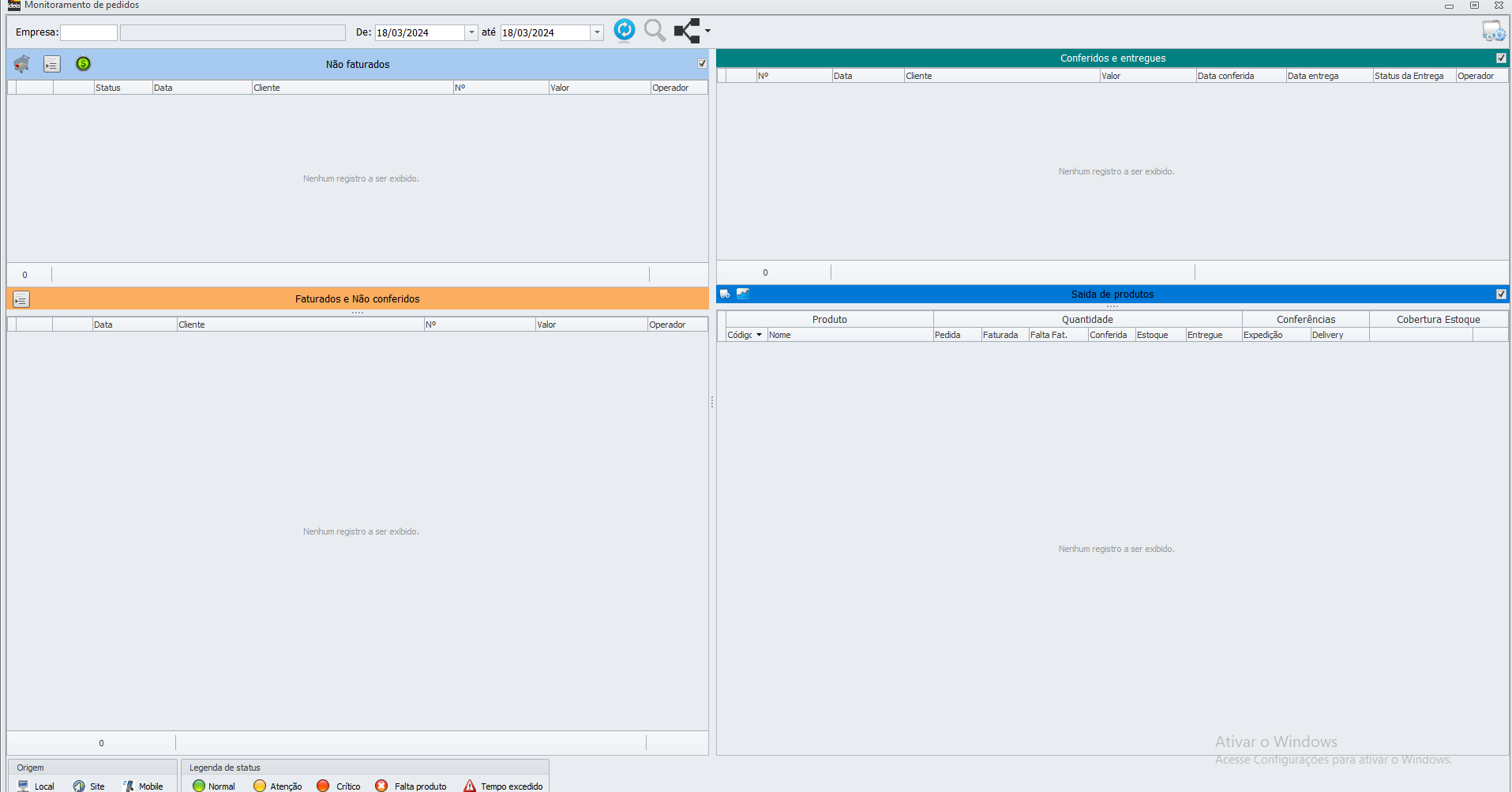 Observação: Nessa tela é possível visualizar os pedidos não faturados, conferidos e entregues, faturados e não conferidos e saída dos produtos.