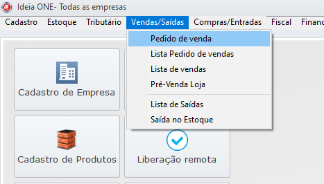 2°: Vá em Vendas/Saídas → Pedido de Venda