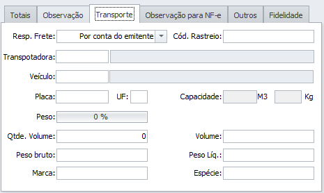 - Transporte: Usado para informar detalhes de transporte. (Opcional)