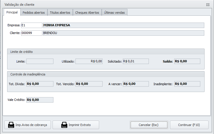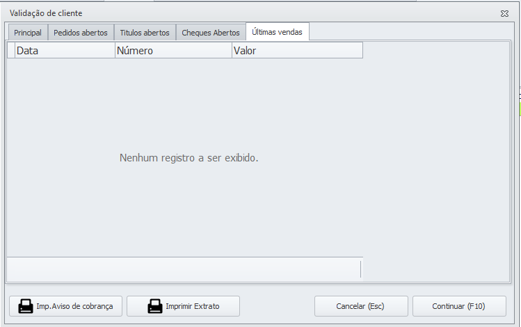 → Nesta tela iremos validar o cliente, verificando detalhes da venda atual e de vendas anteriores do cliente.