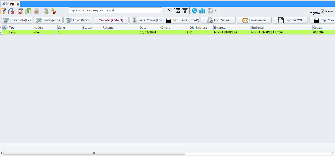 - Gerar e enviar NF-e (Modelo 55): Essa opção gera e já envia a nota para a Sefaz;