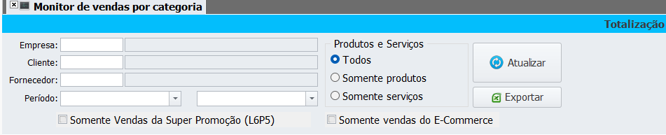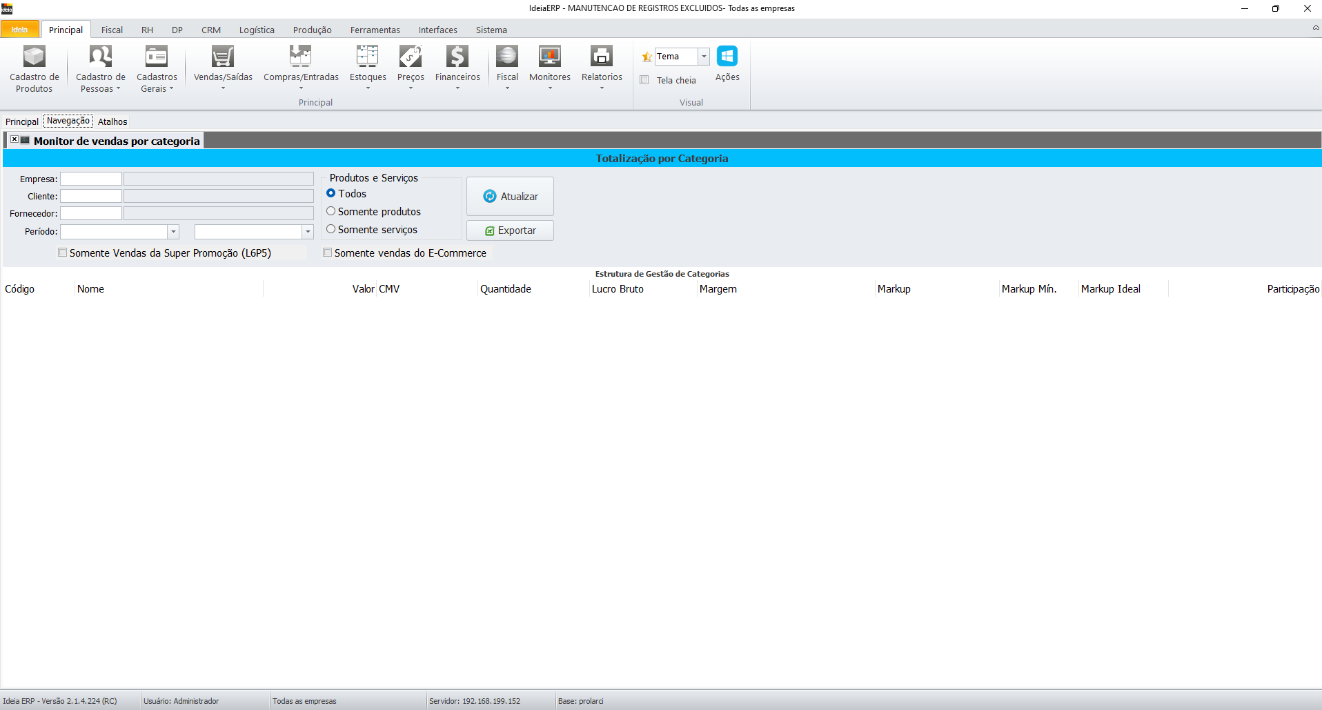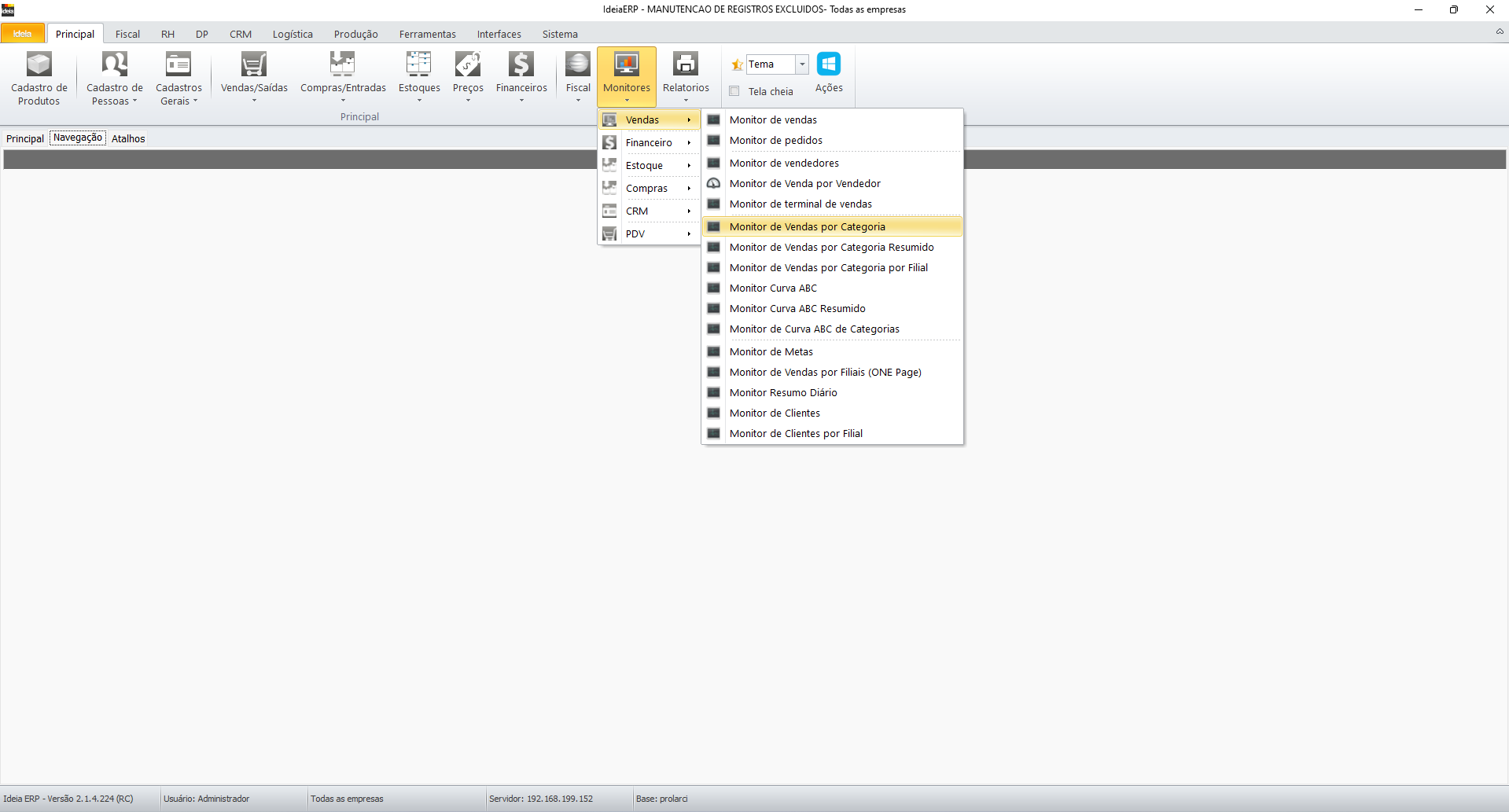 Caminho: IdeiaERP → Monitores → Vendas → Monitor de Venda por Categoria