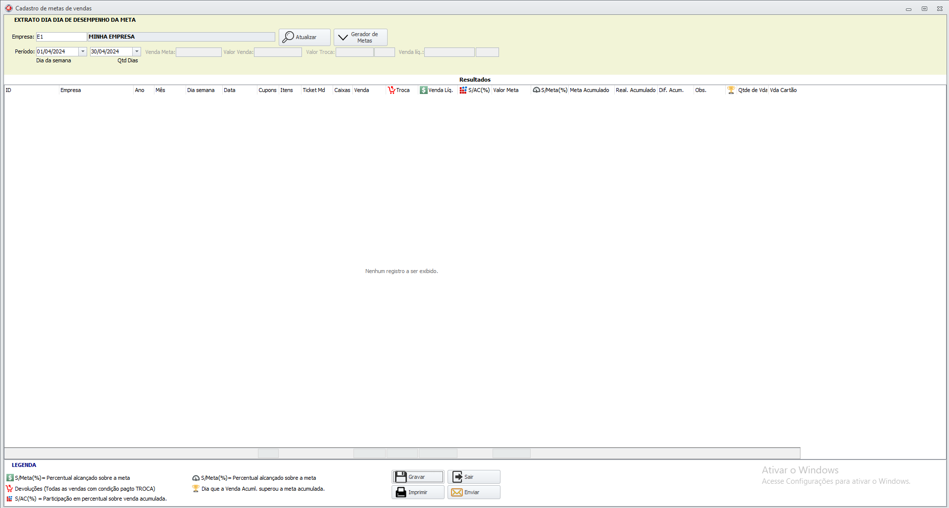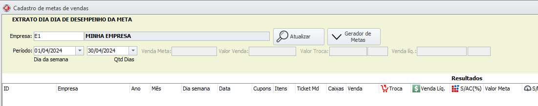 - selecione a empresa e o período desejado para criar a meta.