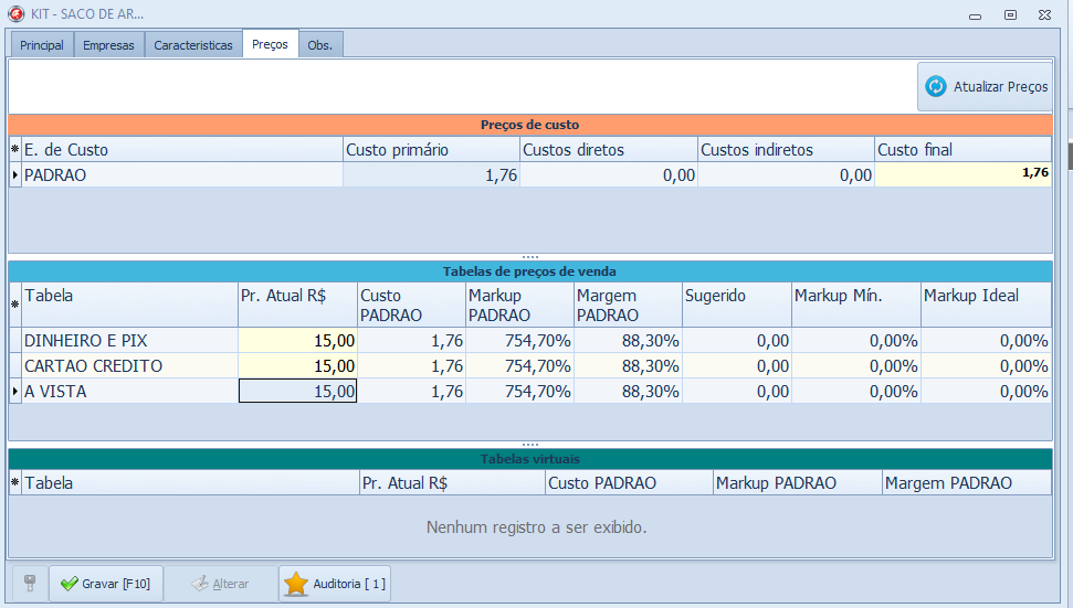 Feito isso você pode colocar o preço do seu novo produto na aba preços.