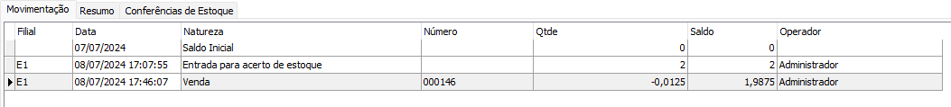 Abatimento fracionado do produto principal + estoque final do produto: