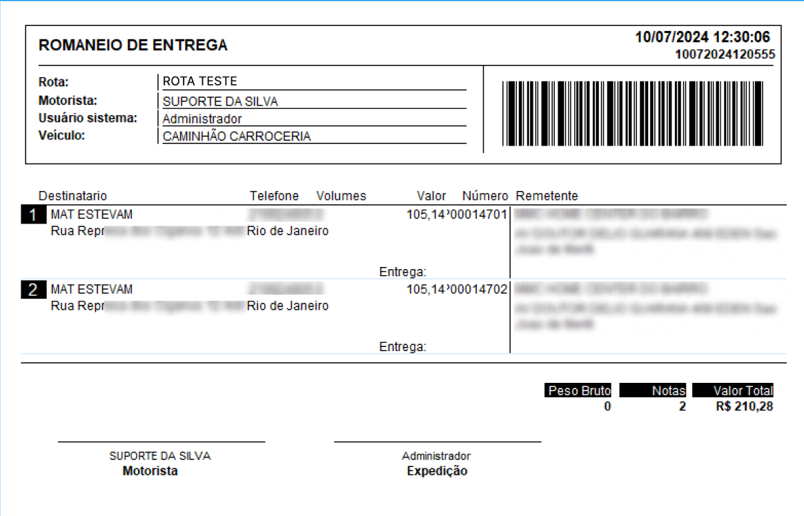 Através do romaneio de entrega, você pode vincular ocorrências a veículos, motoristas e rotas, e ao final do processo realizar a impressão de um documento com tais informações.