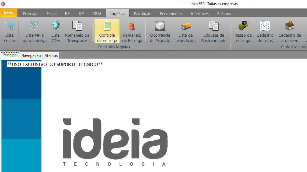 Caminho IdeiaERP: Guia Logística → Controle de Entrega