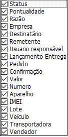 → É possível escolher o que deseja ser visualizado nas colunas, clicando no ícone  abrira a tela abaixo, as que estiverem marcadas a coluna aparecerá na lista de registro