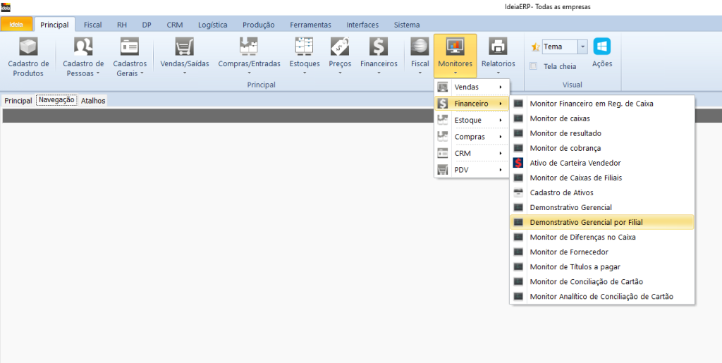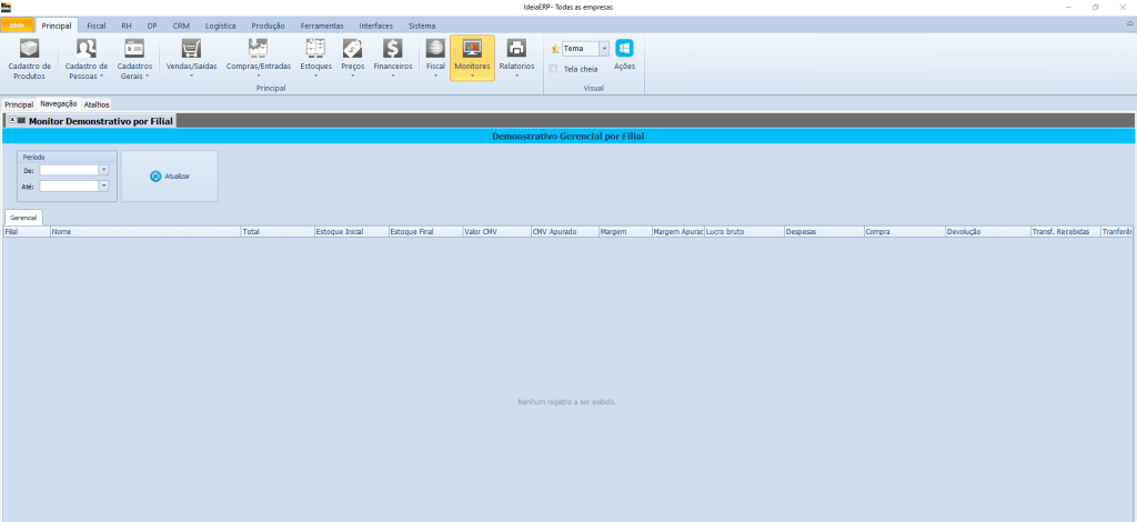 Monitor Demonstrativo Gerencial por filial – IdeiaERP