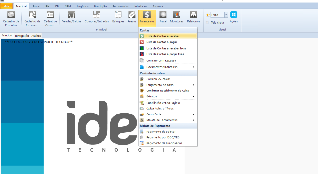 - Acesse o caminho: Principal —> Lista de Contas a Receber.