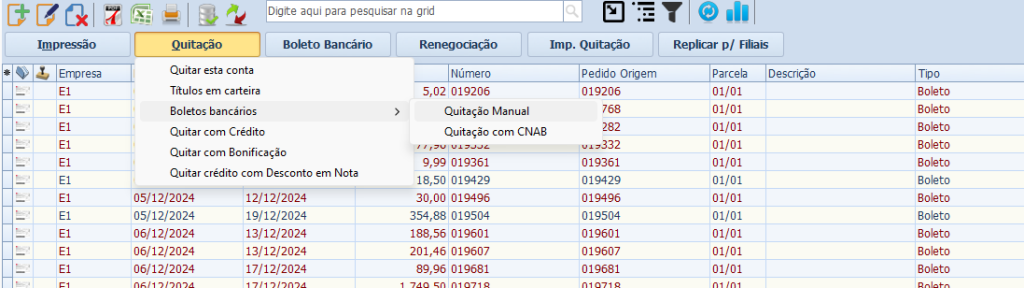 - Clique no botão: Quitação – Boletos Bancários – Quitação Manual