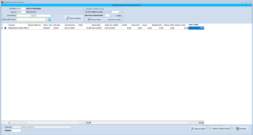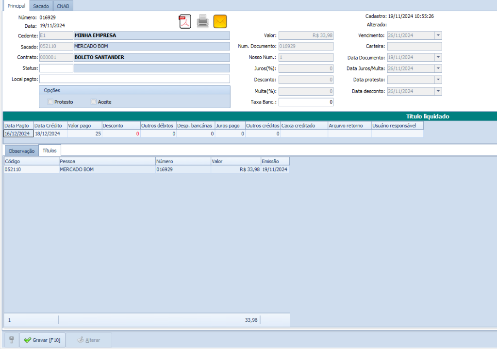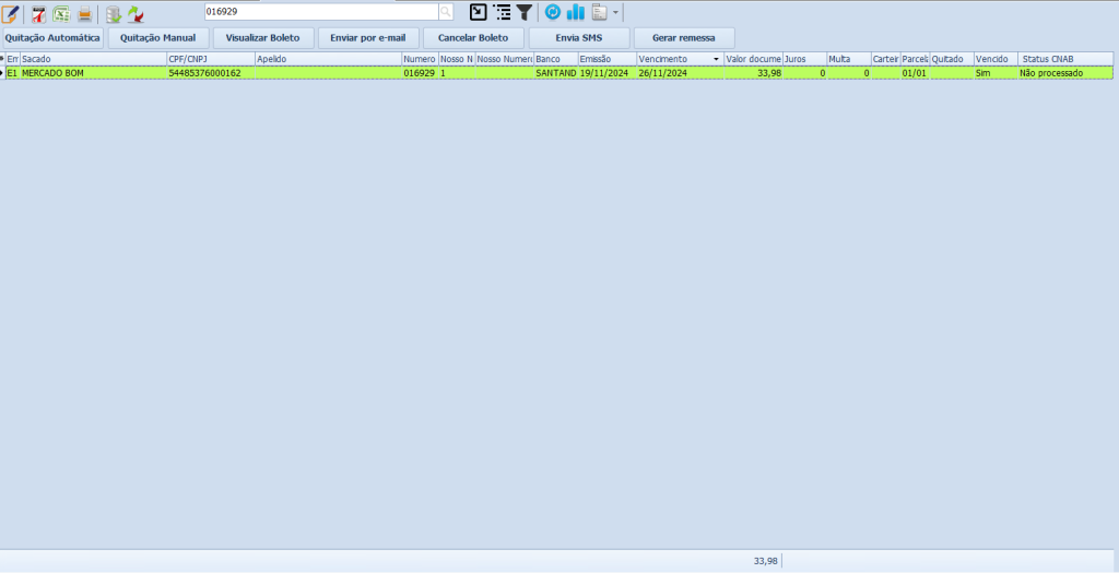 - Clique duas vezes no registro correspondente e abrirá os dados do boleto.
