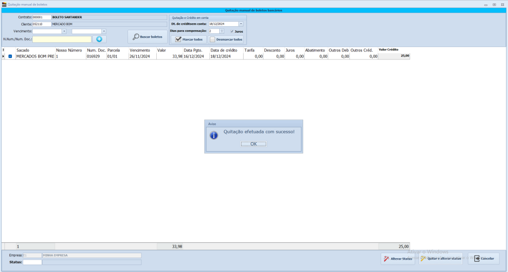 - Utilize a tela de verificação de boletos para confirmar se a quitação parcial foi realizada conforme esperado.