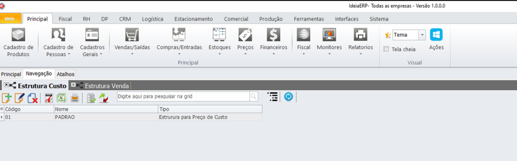 A tela é bem parecida com a Estrutura de Custo e segue a mesma lógica: