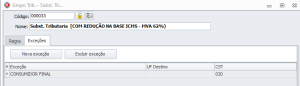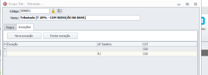 Na exceção, basta informar esse grupo no campo Grupo Destino para aplicar automaticamente a regra diferenciada.
