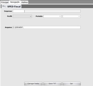 Caminho: IdeiaERP -> Aba Fiscal -> Sped Fiscal